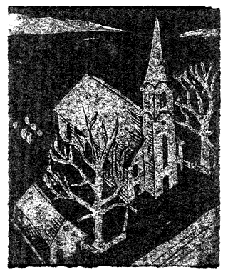Woodcut print card made by my mom depicting