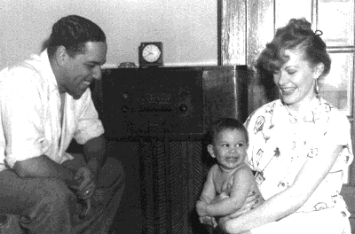 My parents and I in front of the radio in