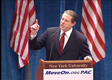 Al Gore gives speech on US policy of domination" at NYU on 26 May 2004. Click to see video.