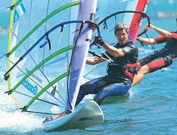 Senator John Kerry was being pulverized by 40 knot winds. His windsurfing buddy cringed at the sight of a United States Senator being tossed around like a rag doll and splattered time and time again onto the forgiving waters of his beloved state of Massachusetts. For three hours, Kerry felt the rage of the wind and struggled to leverage his body against the gale force-finding balance briefly, only to lose it in spectacular crashes. Nevin Sayre, the windsurfer whose equipment the Senator was borrowing, was amazed at the warrior's perseverance and was worried about the Senator's safety. He could see the New York Times headline blaming him for the loss of a luminary. For even he, a former professional windsurfer, had difficulties in these overpowering conditions. "Finally," recounts Sayre, the 54-year old Senator dragged himself out of the water and, grinning from ear to ear, proclaimed the experience as..."OUTSTANDING!"