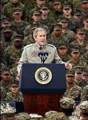 Bush addressed troops at a stadium at Camp Pendleton in southern California, which has experienced one of the largest casualty rates in Iraq.