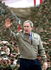 The only things missing from Bush's new threads is an obligatory armband emblazoned with the imperial US flag and an appropriate big hat. Don't worry the big hat is coming; just have to substitute the Nazi eagle with a US eagle and put US presidential seal between those oak leaf clusters. Bush note to self - "Keep sky blue piping."