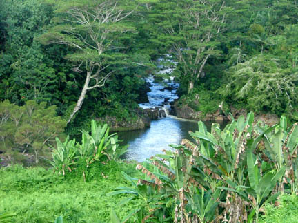 A young monk led us through beautifully landscaped grounds. They have collected the most unique and beautiful plants, flowers, and trees from all over the world. I overheard some tourists claim that the grounds were much more interesting that the botanical garden tour they had taken. The monks have used the existing wetlands to form a series of connected ponds which meander through the grounds. We also had spectacular views of the Wailua River.