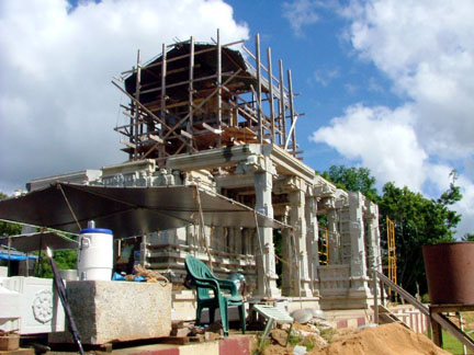 The culmination of the tour is the Iraivan Temple currently under construction. A monumental statue of Shiva faces south overlooking the temple.