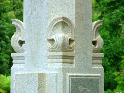 Each column has three layers of unique carvings on all four sides. There are entrances, railings, towers, and a spire, all beautifully carved. The capstone is covered with gold leaf.