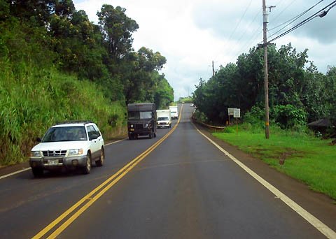 Other cases that frequently create dangerous conditions are when ground cover grows over the safety margin and reaches the white shoulder stripe. This creates sudden situations where there is no place to go but into the traffic. I will volunteer to take the Kaumaalii Highway from Kekaha to Lihue to document (with pictures and mileage markers) the places unfriendly to bikes. There any volunteers for the East and North sides?