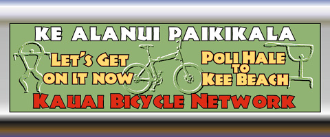 Within this state wide effort is a plan for Kauai. It states that Bike Plan Hawaii 2003 is a state Department of Transportation master plan to create a guide for enhancing the bicycling environment through a variety of channels - from grassroots initiatives to government actions. The plan recognizes that bicycle facilities have become integral to our state and city transportation infrastructure.Well, this stuff has been kicking around for a decade an just about nothing has been done. The planned Nawiliwili to Anahola effort will be the first major step on Kauai but it does not address the current and constant danger to those who ride bikes and walk the roads of Kauai.