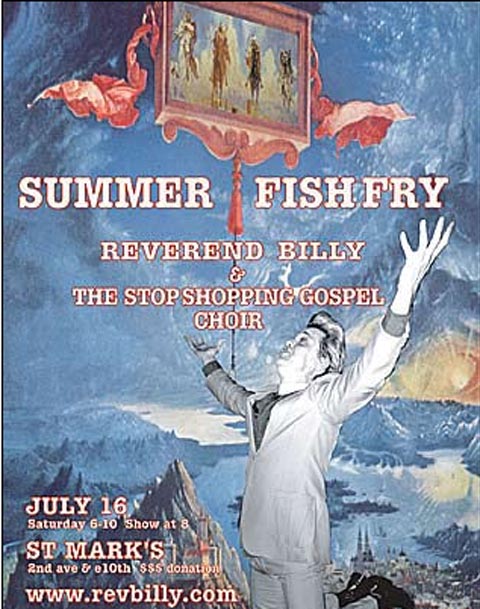 Poster for the Summer Fishfry featuring Reverend Billy & the Stop Shopping Gospel Choir