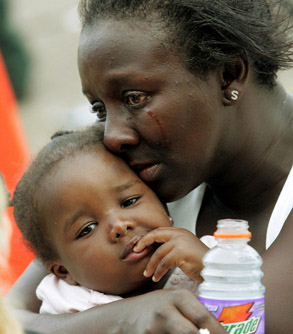 Maybe we can't anymore. On cable news, our normally buttoned-down blow-dried correspondents, almost all of them white, are cracking under the strain of bearing witness to the suffering and even death of the people who weren't looting, who did the right thing and headed to the Superdome, only to find a worse hell awaited them. They've dropped their script and they're asking tough questions. CNN's Chris Lawrence was clearly shaken describing what he saw: "We talked to mothers holding babies, some of these babies 3, 4, 5 months old, living in these horrible conditions ...These people are being forced to live like animals. When you look at some of these mothers your heart just breaks ... People need to see this ... what it's really like here. We saw dead bodies. People are dying at the convention center, and there's no one to come get them."