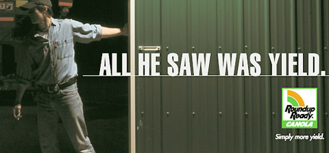 ad for Roundup Ready Canola indicates farmers are only interested in yield