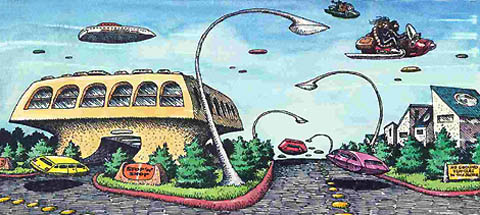 Robert Crumb cartoon of Fun Future if Peak Oil is no crisis at all