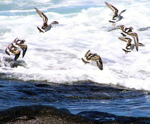 The Akekeke or Ruddy Turnstone, is an indigenous bird found in the winter months on rocky beaches of Hawaii and other tropical Pacific coasts. They are called Turnstones because they turn stones over with their beaks to find and eat the small insects and crustaceans underneath. They occasionally will also eat small fish, carrion, and other bird’s eggs. They nest and summer over in the Arctic tundra, from April until August, although a few have been seen to summer over in Hawaii.