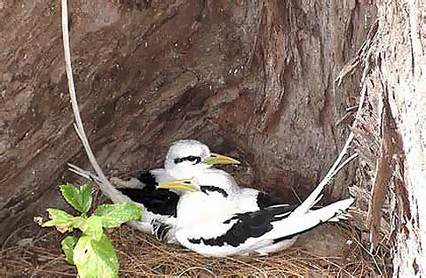 Tropic Bird chicks in an aerie in the Seychellis Islands