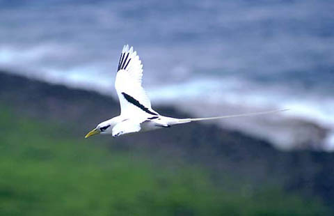 I first saw the Koa’e kea or White-tailed Tropicbird from the Kalalau lookout on Kauai. It was a breathtakingly beautiful sight to see this beautiful, graceful bird soaring the air currents near the cliff faces.