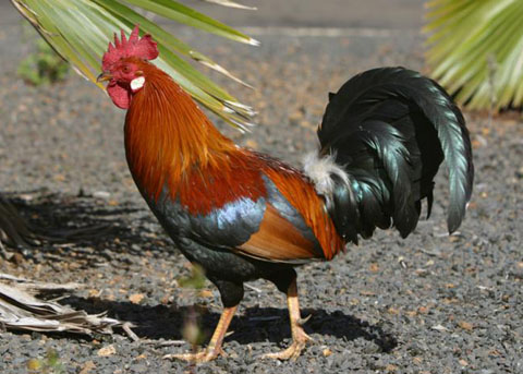 The Moa or Red Junglefowl is a very common sight on Kauai. We see Moas, as well as other varieties of chickens, in many Kauai locations. Moas have interbred with domestic varieties. The books say that true Moas are found primarily in the uplands like Kokee. However, we see many Moa-like chickens throughout Hanapepe Valley, at Salt Pond Beach, and at many other nearby locations.