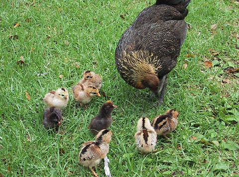 The Moa, or Red Junglefowl, is the ancestor of all domesticated chickens, according to DNA studies. The bird originated in Asia, likely in Thailand, where it was first domesticated. Japanese researchers have compared DNA and found that every breed of domesticated chickens descended from these Red Junglefowl which they now believe were first domesticated 8,000 years ago. The first Polynesians brought the Moa with them to Hawaii. In their voyaging canoes, they carried a package of domesticated animals, including pigs and chickens; and food plants, including taro, breadfruit, sweet potato, and more. Canoe Plants Website: http://www.canoeplants.com/index.html