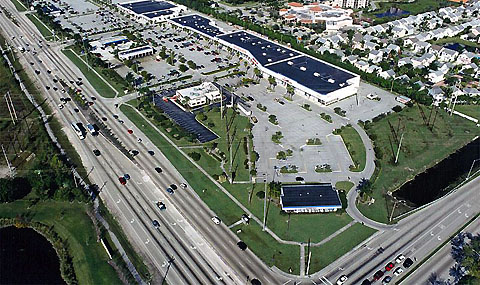 image above: aerial view of a plaza development by Ross Reality Investments in South Florida