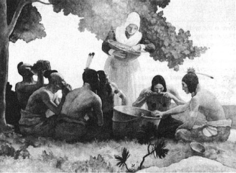 image above: painting by N.C. Wyeth: "The First Thanksgiving"
