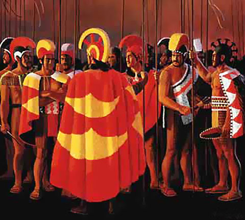 painting of "Council of Chiefs" by Herb Kane at http://hawaiiantrading.com/herb-kane/index.html