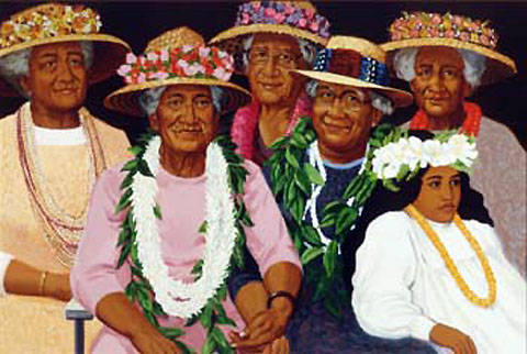 painting of "Members of the Wedding" by Herb Kane at http://hawaiiantrading.com/herb-kane/index.html