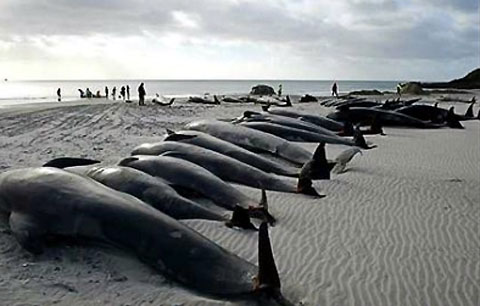 Editor's Note: Besides the melonhead mass stranding in Hanalei, the Navy has squirmed its way out of responsibility for several mass strandings of sea mammels in recent years. A notable one was in January of 2005 along the coast of North Carolina. Below is an an extract for a "whitewash" article related to that stranding from www.NewScientist.com