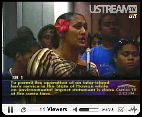 All the groups were in agreement. Senators were warned that the harbor would be filled with protestors if the Superferry tried to return.[Editor's Note: I recieved a phone call that mentioned that at least two Kauai residents who gave testimony that Linge should be impeached.]