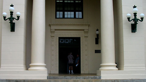 entrance of the old Kauai County Building on Rice Street where County Council public meetings occur
