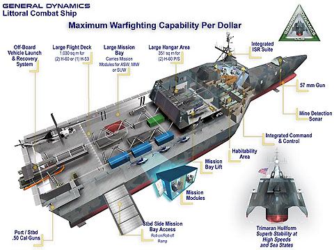 image above: General Dynamics proposal for LCS based on Austal hull design
