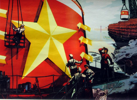 image above: ship building poster from Communist China entitled "The Sparkling Star"