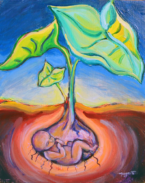 image above: "Haloa I (Taro Baby)" by Maggie T. Sutrov, Sutrov Gallery, Pa'ia, Maui