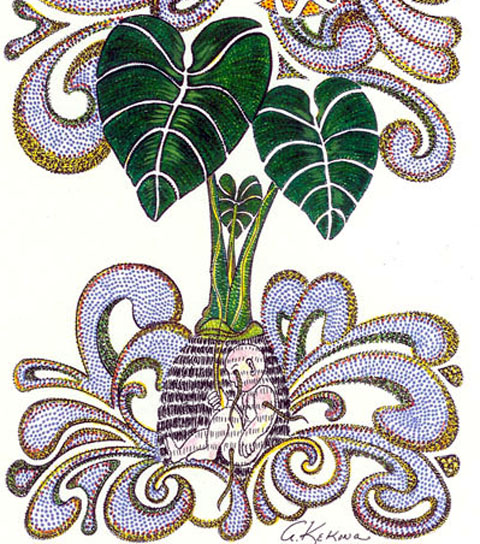 image above: detail of taro by A Kekona for2008 Maui Taro Festival