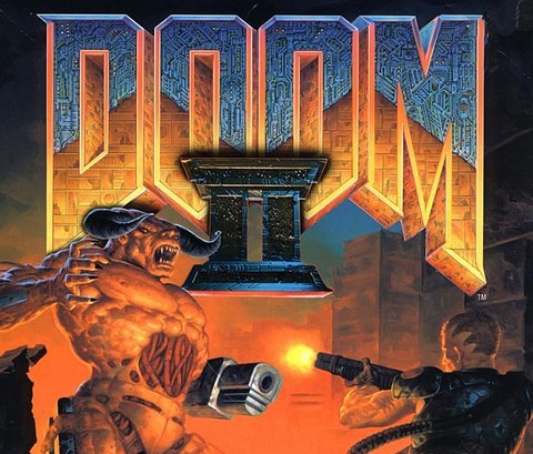 image above: Detail of cover art for the game" Doom II" from ID Software released in 1996