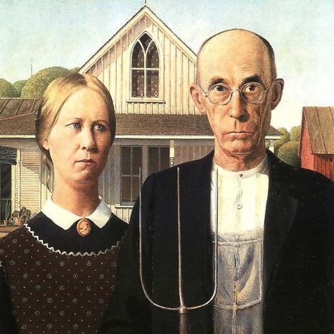 image above: Detail of "American Gothic" by Grant Wood (1891-1942)
