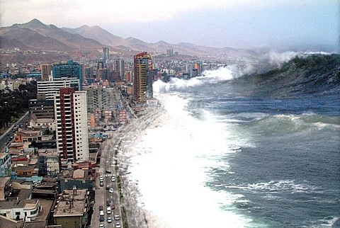 image above: Faked illustration of tidal wave hitting Thai island of Phuket at http://urbanlegends.about.com