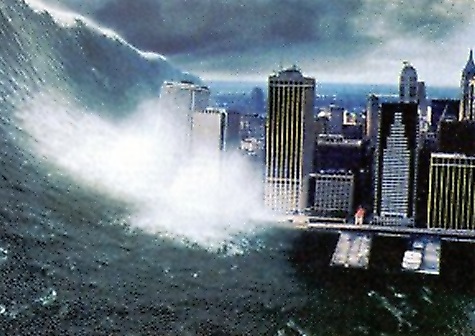 image above: Still from 1998 movie "Deep Impact" - Astroid causes tsunami to hit NYC financial district