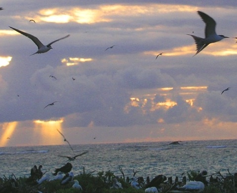 image above: Birds flying over the North West Islands of Hawaii