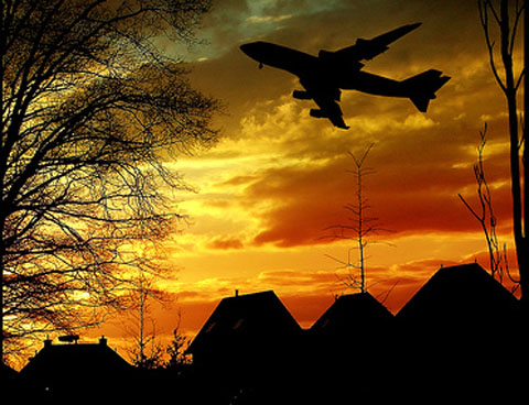 image above: Sunset for commercial jets - and the suburbs they fly over