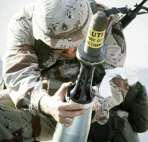 Depleted uranium was used in spotting rounds because of its weight. The projectile, which gave off smoke on impact, was used in training to simulate the trajectory of the weapon's nuclear warhead.