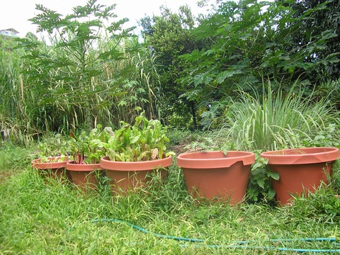 My husband and I have begun to garden more seriously. Last spring, we bought a few large pots and some organic soil and compost from Home Depot. There are probably better sources for these materials, especially on the East and North shores, but we just needed to get started.We planted a container garden. We found that we can easily grow enough leafy greens, spinach, and lettuce for our needs in four or five large pots. We also have several smaller pots of herbs. Container gardens are a great option for folks who live in apartments or have limited yard space.