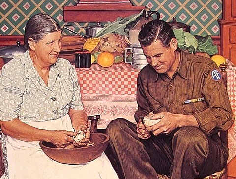 image above: Detail of "Thanksgiving - Mother & Son Peel Potatoes" by Norman Rockwell