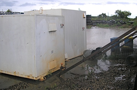 image above: Goodfellows yard appears to include illegal tire dump, barrels of chemicals and other violations. Picture by Juan Wilson 11/21/08