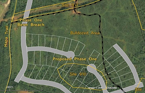 Two points worked in Hapa Trail's favor with the Commissioners. The first was a strong, powerful and detailed letter from OHA authored by OHA's administrator Clyde Namu'o. OHA demanded the Planning Commission withhold approval until all archeological sites were duly reviewed by OHA as they were not informed of the significance of the Koloa Field System. The second was the proposed breaching of Hapa Trail with no Environmental Assessment for Hapa Trail's breaching as is required by law as Hapa Trail belongs to the County of Kaua'i. Another important issue raised by the community was that the developer needed Council's approval for an permanent easement over Hapa Trail.