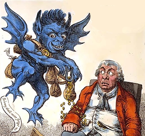 image above: William Holland 1814 property tax catroon of John Bull and the Property Tax demon
