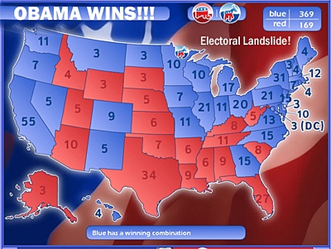 image above: Electoral Map displaying huge landslide for Barack Obama