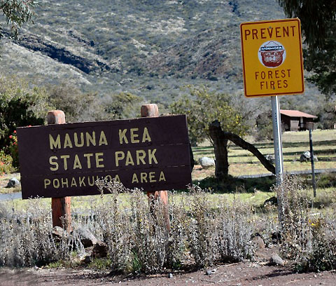 image above: Sign for Mauna Kea State Park belies the nature of its future