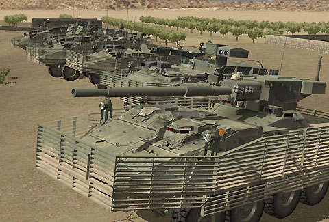 Computer generated simulations of Strykers from www.BattleFront.com game simulation.