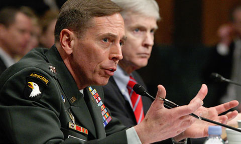 image above: General David Peraeus before Senate Committee 4/8/08 from NY Times