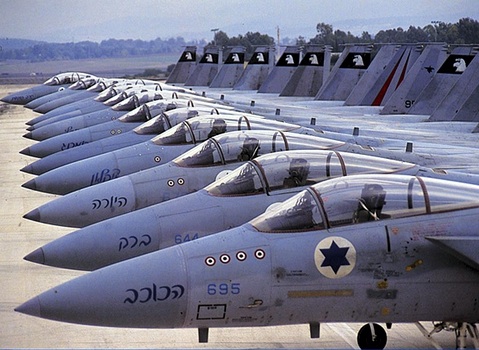 image above: American designed F-15 Falcon Israeli Air Force jets