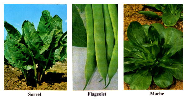 We are including recipes for Sorrel Soup, Sorrel Sauce, Flageolet Beans and a simple French Dressing for Mache and other lettuce greens. You can then have a typical French family dinner. Don't forget the wine!