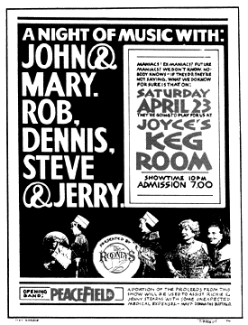 This show was a kind of test drive for the Maniacs after Natalie Merchant had left the band and the former members, John returned. Mary had been working with John. She took over as lead vocalist at this concert. The admission was $7 and a portion of the gate were used to assist Richie & Jennie Stearns (early members of Donna the Buffalo) with some unexpected medical expenses. The Maniacs do a lot of benefits to this day.